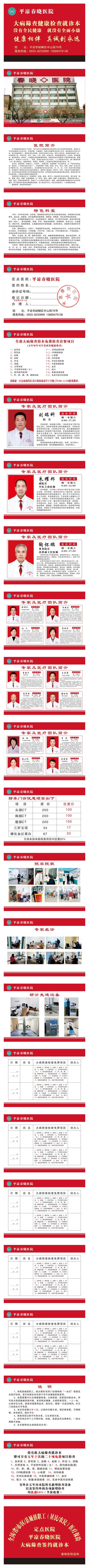 平凉春晓医院创建于1996年。是平凉市卫生健康委员会批准成立的平凉首家民营医院。医院位于平凉市崆峒区中山街76号,环境优雅、交通便利。医院占地面积5800多平方米,建筑面积4900多平方米。是平凉市城镇职工、居民医保定点医院。医院预设床位80张,员工88名,其中医护人员58名,高级职称医师11名,中级职称17名。设有内科、外科、妇科、儿科、骨科、泌尿外科、中医康复理疗科、口腔科、医学影像科、医学检验科、超声科、心电图室及职能管理等科室。有高科技诊疗设备西门子超导核磁共振、联影螺旋CT、普爱DR(拍片机)、彩超、迈瑞全自动生化分析仪、十二项尿液分析仪、幽门螺旋杆菌(pH)碳14测试仪、麻醉呼吸机、洗胃机、吸痰器、心电监护仪等医用设备50余台(件)。