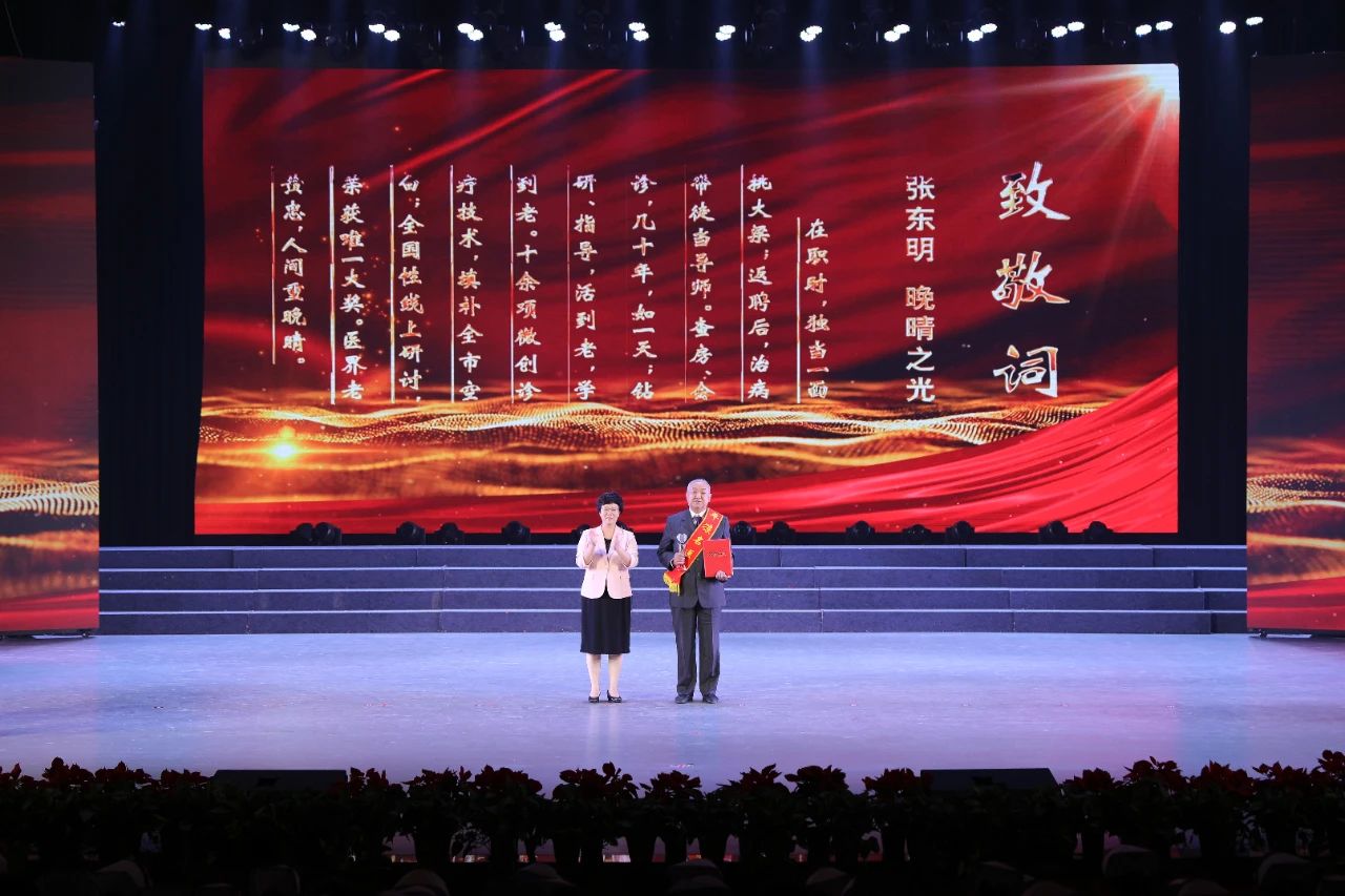 大会现场灯光声影交错,气氛温馨热烈,以宣读致敬词的形式,向大家展示了张世辉等10名最美村医、朱小伟等10名优秀卫生院院长、厚晔等10位平凉市名中医、张雅君等10名优秀护士的先进事迹;通过播放短片、宣读致敬词,将情系乡亲、攻坚膝关节顽疾的灵台县人民医院骨科副主任医师郭永波,坚持生命至上、二十六年救治上千名患者的静宁县人民医院神经内科副主任医师刘随玲,两代从医、风雨行医三十载的崇信县人民医院内一科副主任医师王新群,良方救患、总把病人当亲人的泾川县人民医院中医内科主任医师薛军民,骨科脊梁、填补行业技术空白的华亭市第一人民医院骨科主任医师高健强,传医授道、致力解除肝胆病痛的庄浪县人民医院肝胆外科主任医师李昱,仁心仁术、“中国好人”获得者平凉市妇幼保健院外科主任医师岳超,守护新生、视患儿如己出的甘肃医学院附属医院新生儿科主任医师连喜院、冲锋在前、筑牢防护防控铁壁铜墙的平凉市疾控中心传染病防治所主任医师阎峻,救死扶伤、十余项治疗技术填补市内空白的平凉市第二人民医院呼吸内科主任医师张东明等10位平凉名医的感人故事进行了深情讲述。他们中有爱岗敬业、恪尽职守,多年来为医疗卫生事业作出突出贡献的前辈;也有潜心钻研医疗技术,不断进步的业务骨干;还有朝气蓬勃、奋发向上,全面发展的青年医生。他们不断修医德、行仁术,在日常工作中用实际行动诠释了新时代医者的责任与担当,为保障全市人民健康作出了积极贡献。